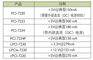 • 在50%負載時所有通道130 mA(PCI-7230/LPCI-7230/l_PCIe-7230)